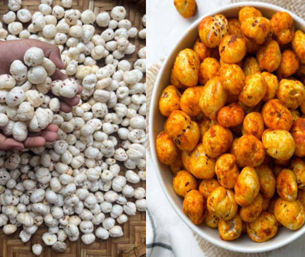 Makhana is believed to offer several health benefits, including aiding in weight management, promoting heart health, and helping manage blood sugar levels.